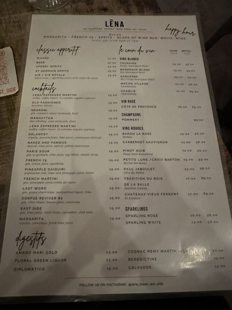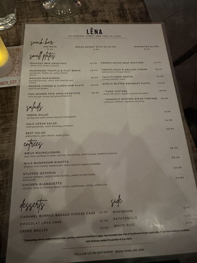 The ambiance complements the cuisine with its cozy décor and an inviting atmosphere, praised by diners who appreciate attentive service and a well-curated wine selection. Whether you're looking for a relaxed meal or a quick drink, Lena L.E.S promises a memorable experience that combines culinary artistry with a casual yet refined vibe. Highly recommended!
